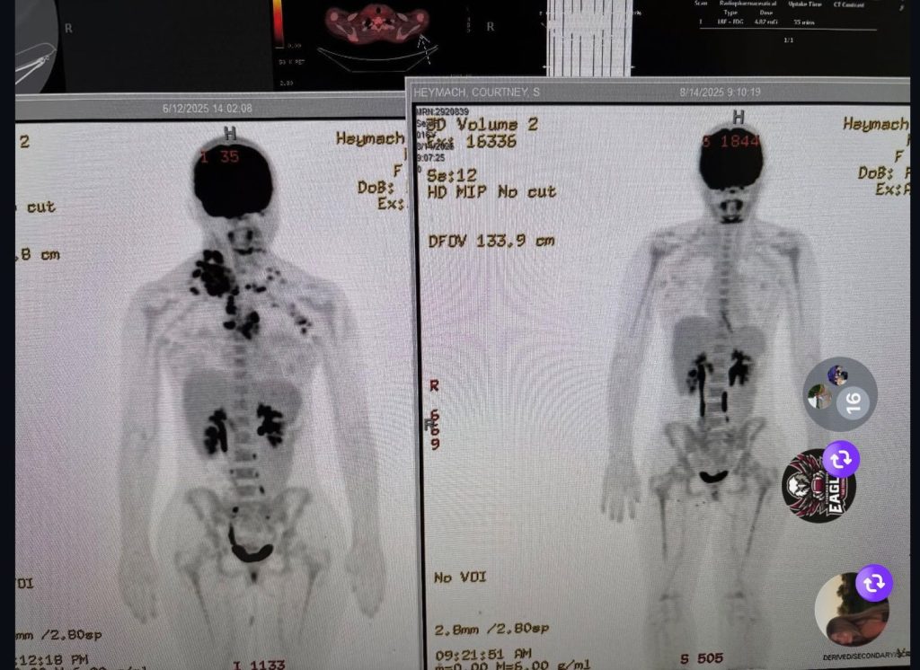 Courtney has shared her story. She never felt sick. She did not have any symptoms other than enlarged lymph nodes, which initially were tiny and non concerning. She was her own best advocate. She showed every doctor we saw for every routine appointment, looking for a reason these lymph nodes were not going away. She had routine labs at each appointment, two ultrasounds, a chest x-ray, a more comprehensive blood panel, a core biopsy, and flow cytometry test, which all showed no evidence of anything other than the enlarged lymph nodes. No one was concerned…until they were.